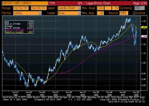 Dejo dos gráfico de Bloomberg en el que podemos ver la evolución del EURUSD en el último año, y uno en el que vemos la evolución desde su inicio (el 1 de enero de 1999):