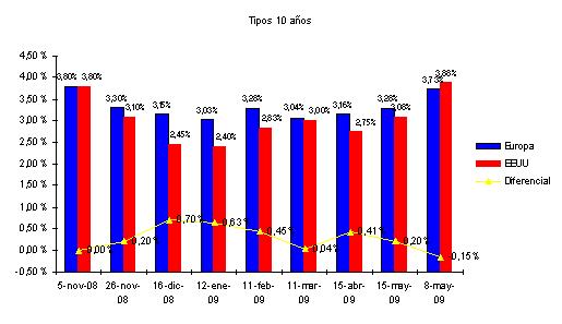 En el caso del BCE, parece que no tiene mucha intención de bajar más los tipos de interés. Ha reducido los tipos en 325 puntos básicos desde el pasado 8 de octubre de 2008, lo que ha llevado la tasa desde el 4,25% al 1% actual. A partir de ahora todo apunta a que se centrará en emplear medidas no convencionales para combatir la recesión. En el caso de EEUU, más bajadas no se pueden dar y parece que empiezan a preparar el terreno para futuras subidas de interés. Lo que está claro, es que si se llegan a producir, se producirán pasados unos meses.