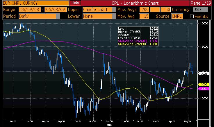 En el análisis del mes de mayo, expliqué lo importante que era para mí que la cotización del EURUSD hubiera roto la media de 200 sesiones tras estar 9 meses por debajo de ella. Lo comenté particularmente en este otro post: «Análisis de la media de 200 sesiones en el EURUSD (agosto 08 – mayo 09)».