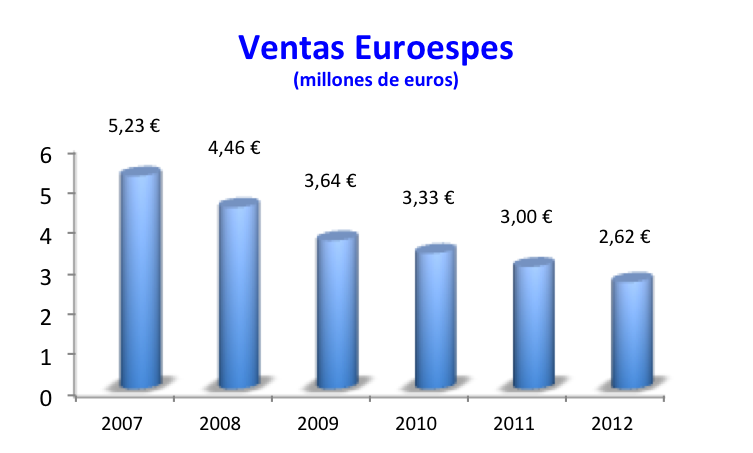 Euroespes ha presentado unos resultados que no son nada buenos. La crisis como es natural le está afectando pero es que desde 2007 no levanta cabeza en términos de ingresos.