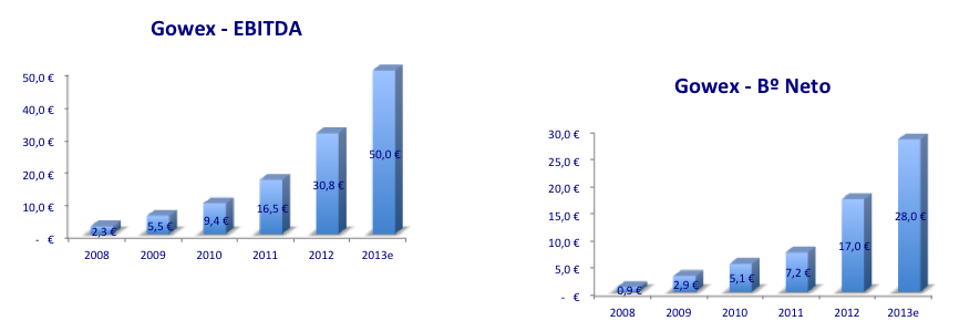 • adquisición de empresas: creo que en menos de un año vamos a conocer una gran operación de Gowex que podrá hacer crecer su cifra de negocio mucho más de lo que lo está haciendo a día de hoy y por lo tanto, también creo que los beneficios se podrán disparar aún más en los próximos años.