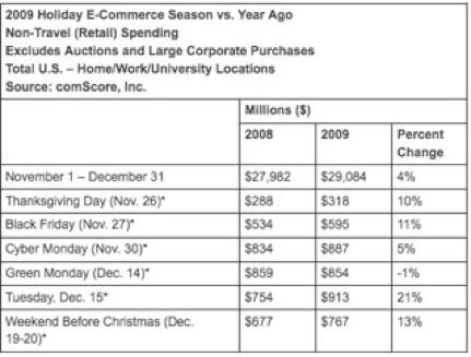 Leo a través de investorsconundrum que las cifras de ventas online en las fiestas navideñas en EEUU se resienten pero crecen. Aunque el crecimiento ha sido moderado, se ha vendido un 4% más que el año pasado, creo que es muy positivo ver que lejos de caer o mantenerse, las ventas online crecen algo. Cuando poco a poco la economía vaya mejorando, seguro que veremos crecimientos importantes en las ventas por Internet.