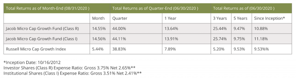 Este fondo de inversión de EEUU, Jacob Micro Cap Growth Fund, cuyo foco de inversión son las microcaps, sube en lo que llevamos de año más de un 20%.